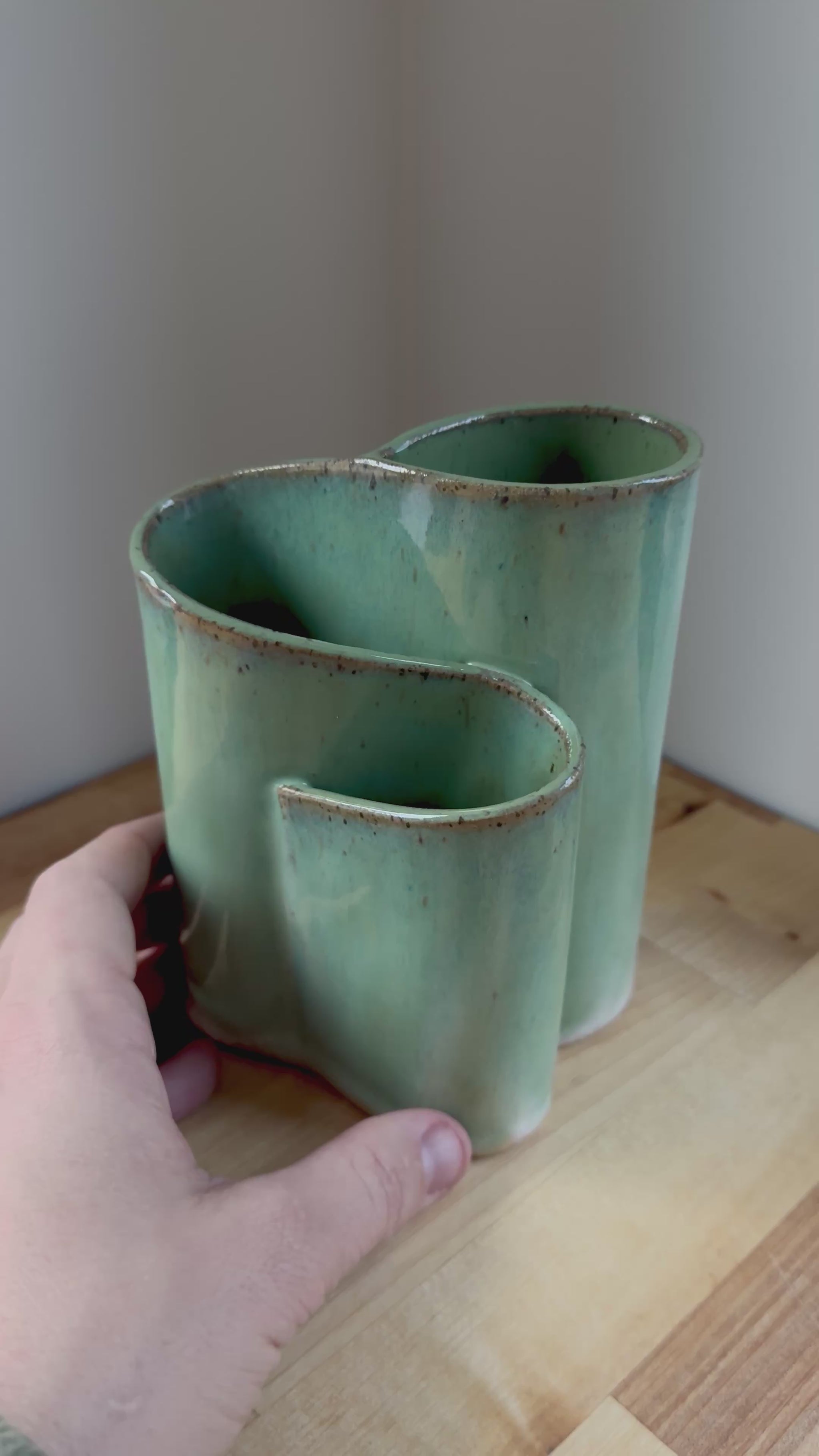 The layered folds allow glaze to settle differently across each surface during firing, creating subtle variation in tone and texture. Slight asymmetry is part of the handmade character and evidence of the process.